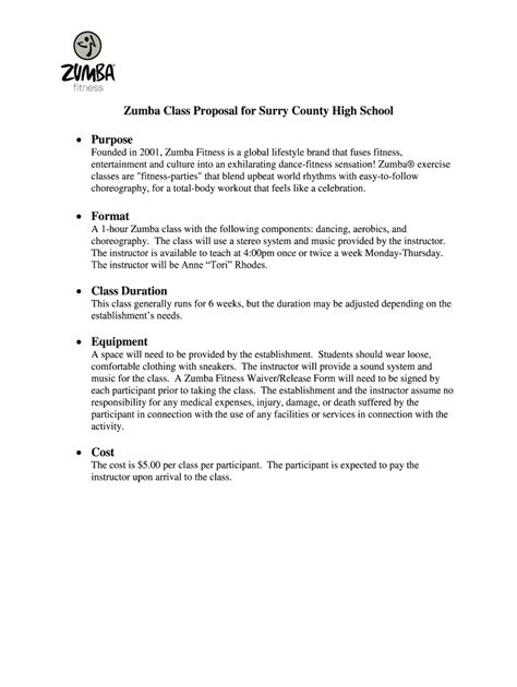Download SAMPLE FITNESS CLASS PROPOSAL rtf